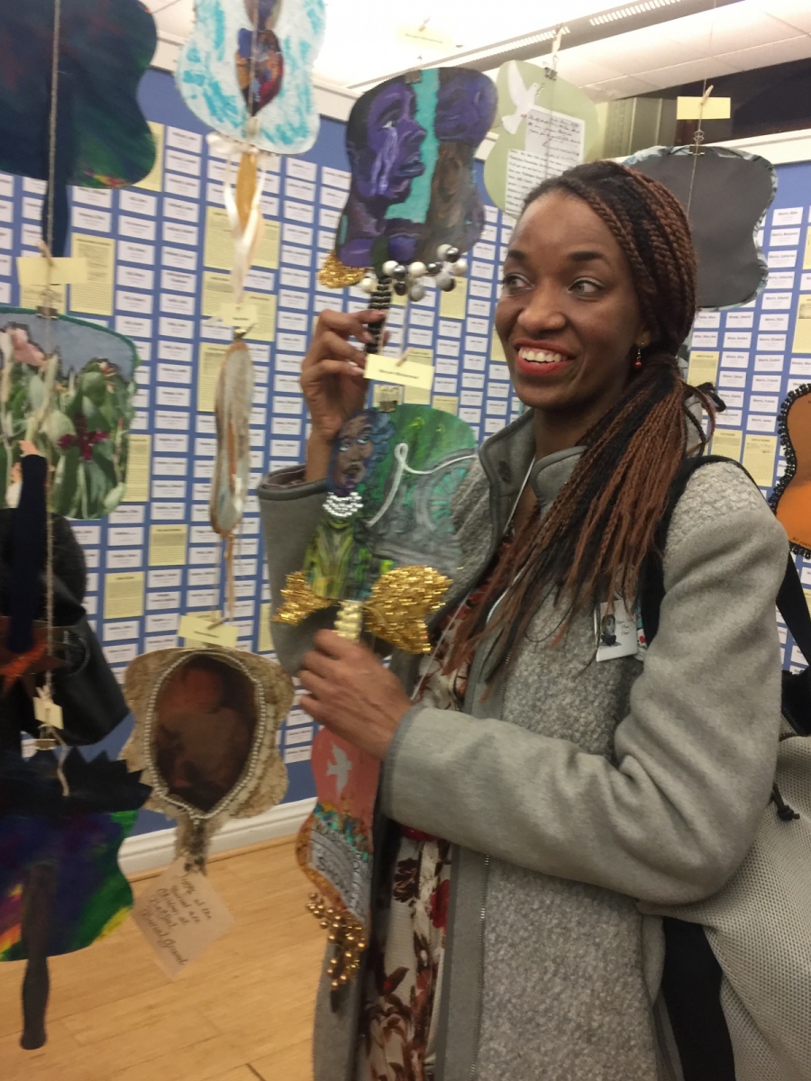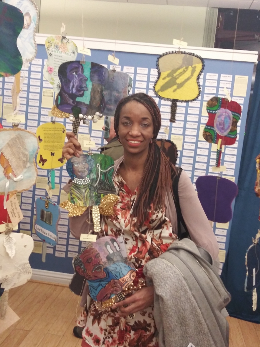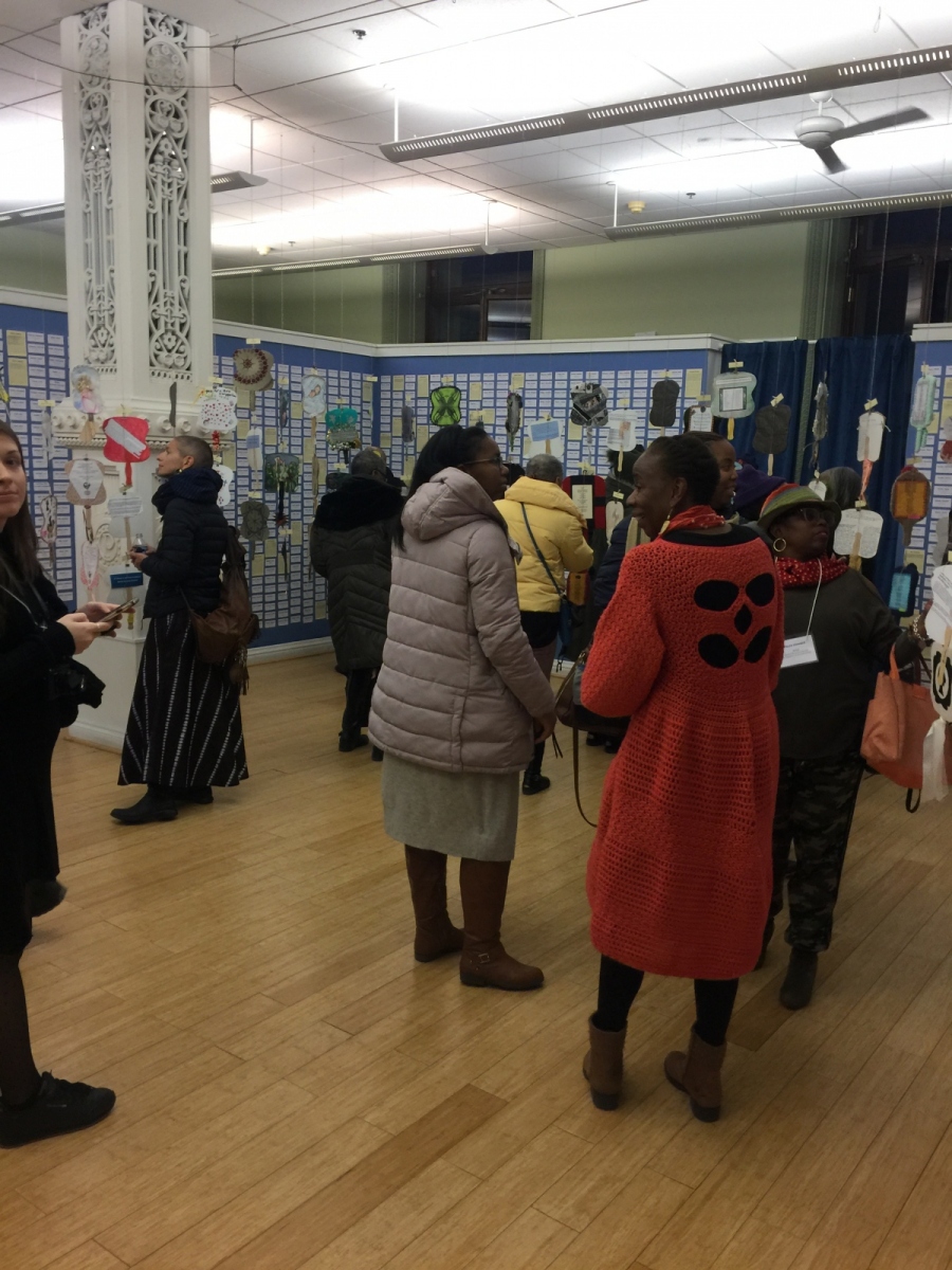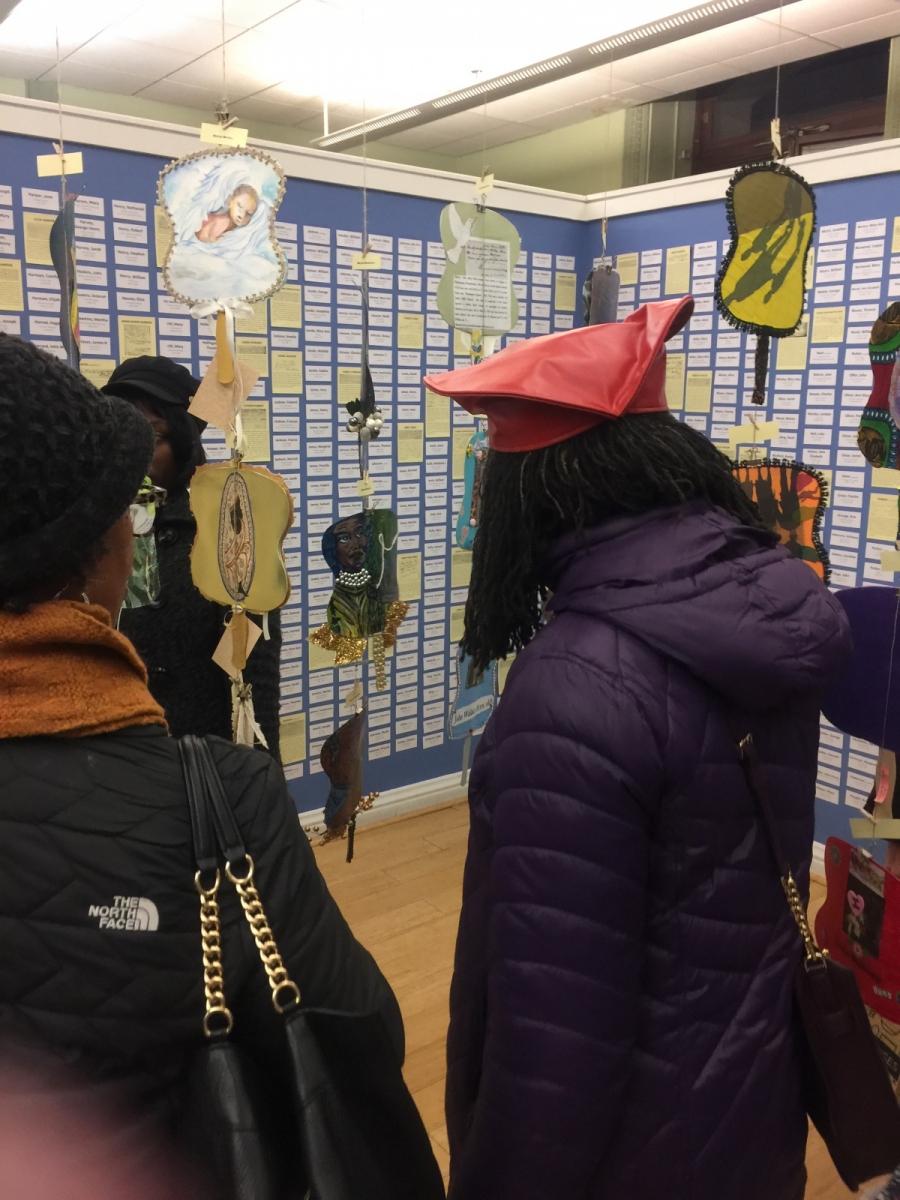 Please, do enjoy photographs of mixed media artistry created and contributed to the Bethel Burial Ground Arts project by Maryam. Make sure to scroll down to view photographs from the January 30th Reception held in City Hall – Room 116.